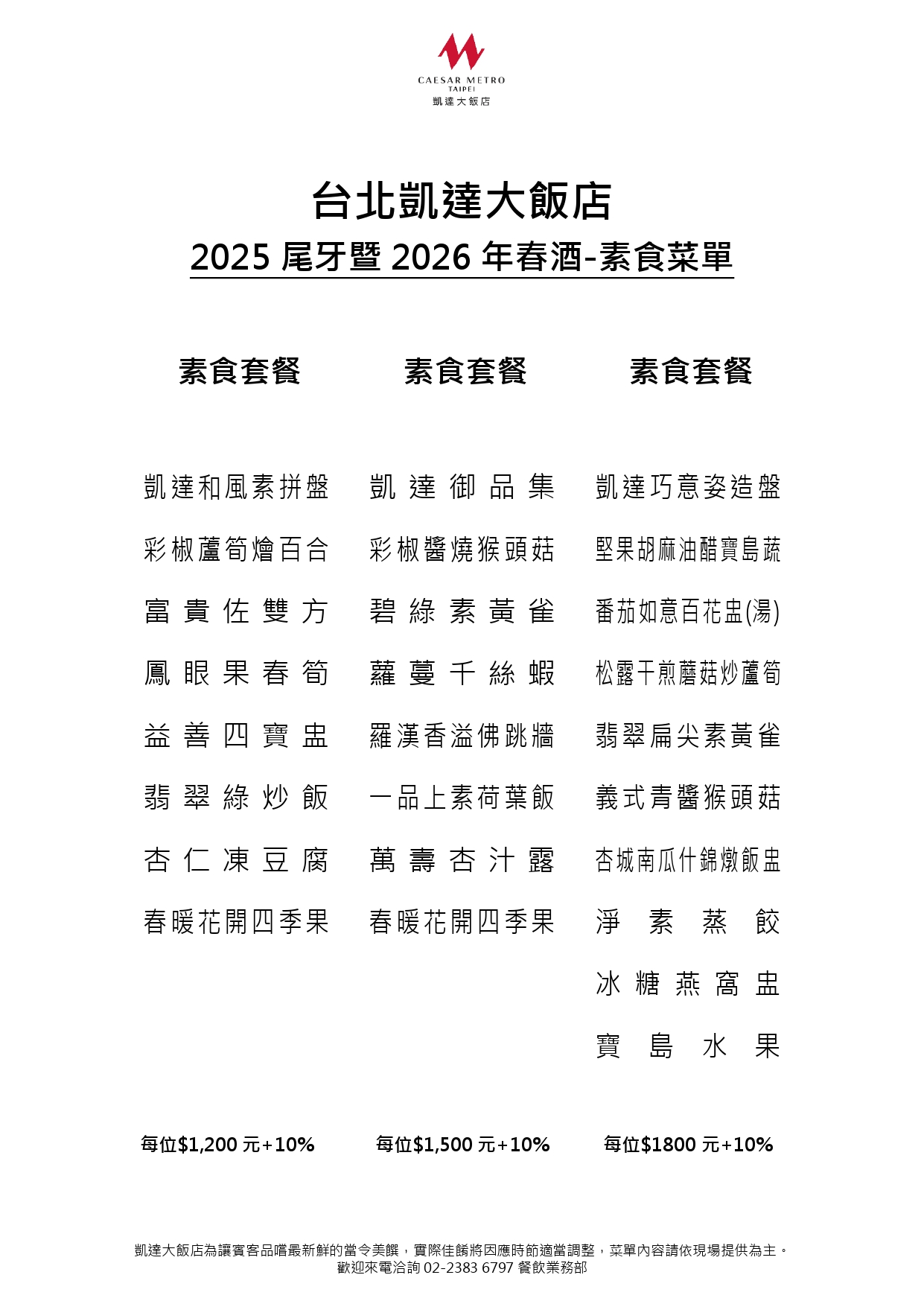 5. 如需主桌專人分菜服務(不含倒酒水),每桌10人計算/人力費NT1,500。