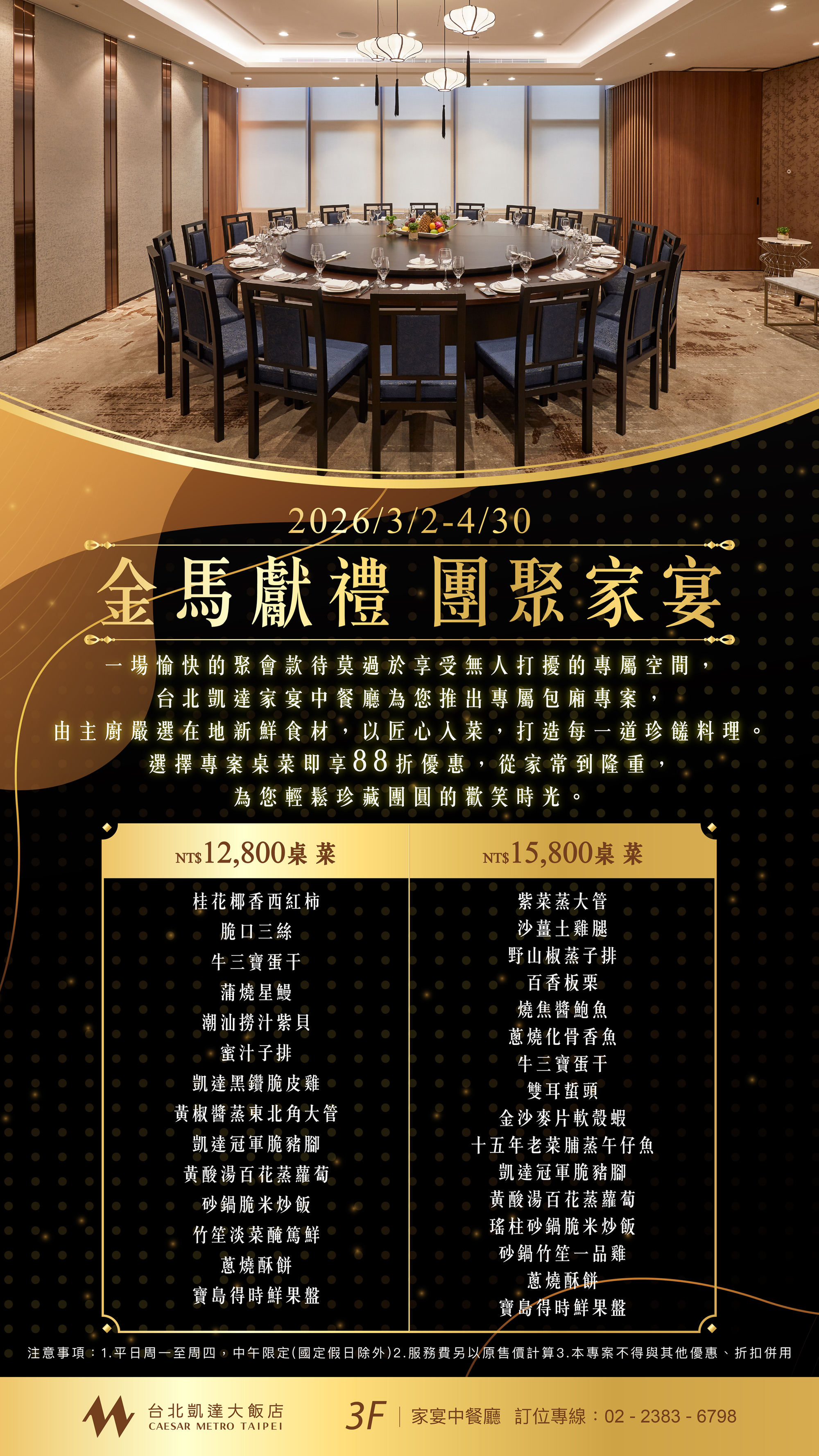 金馬獻禮.團聚家宴 | 平日午餐桌菜享88折,最低只要11,264元