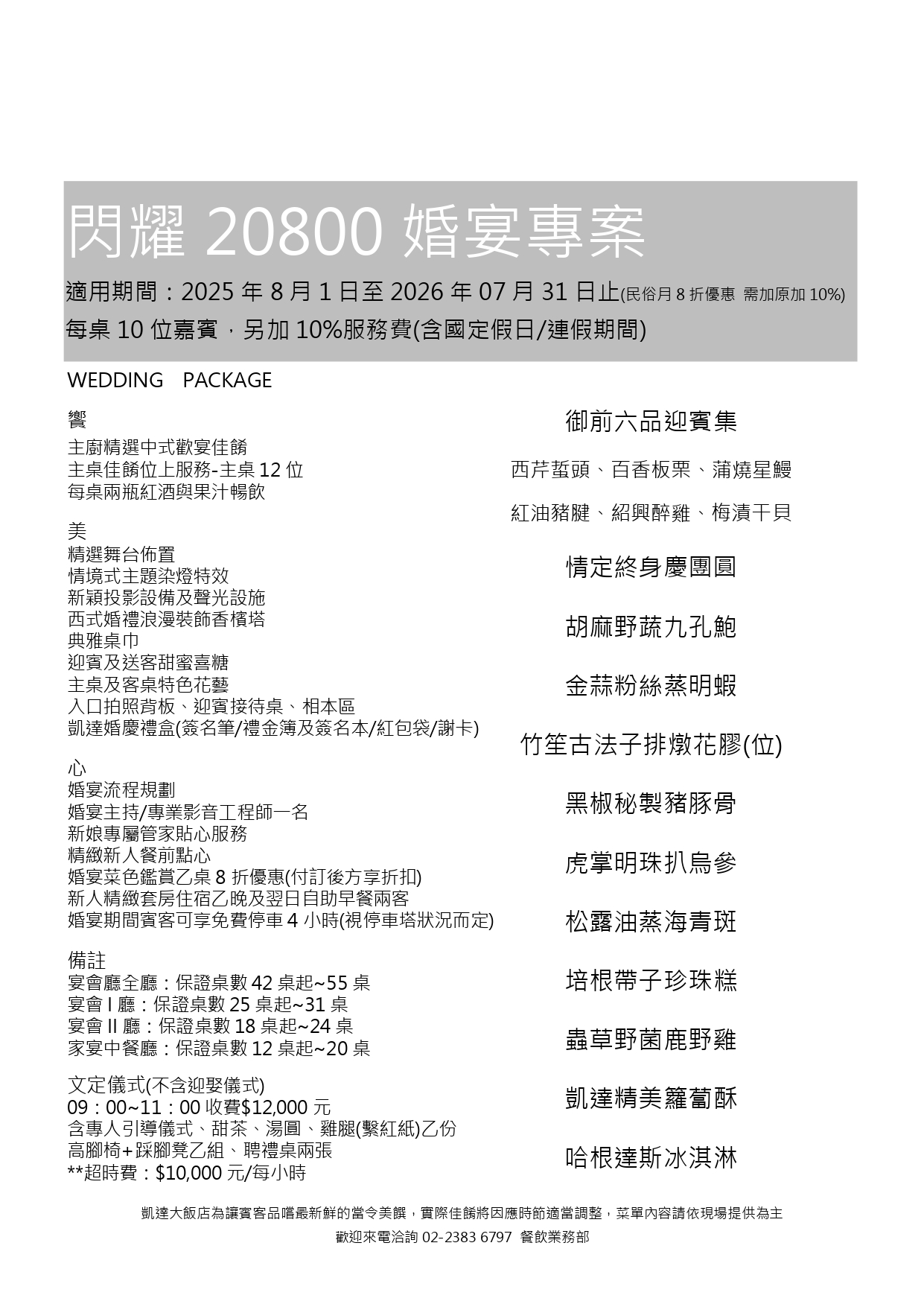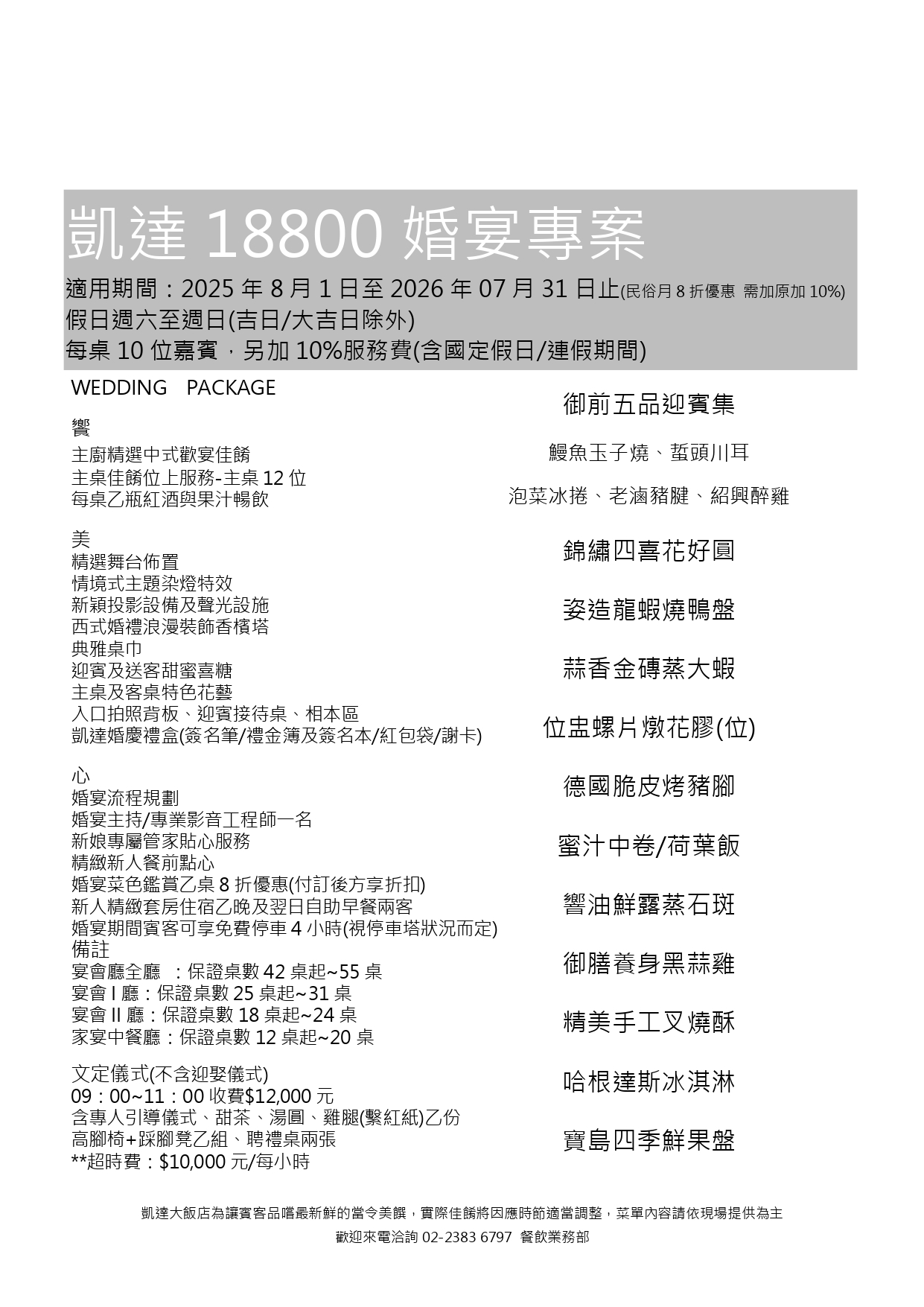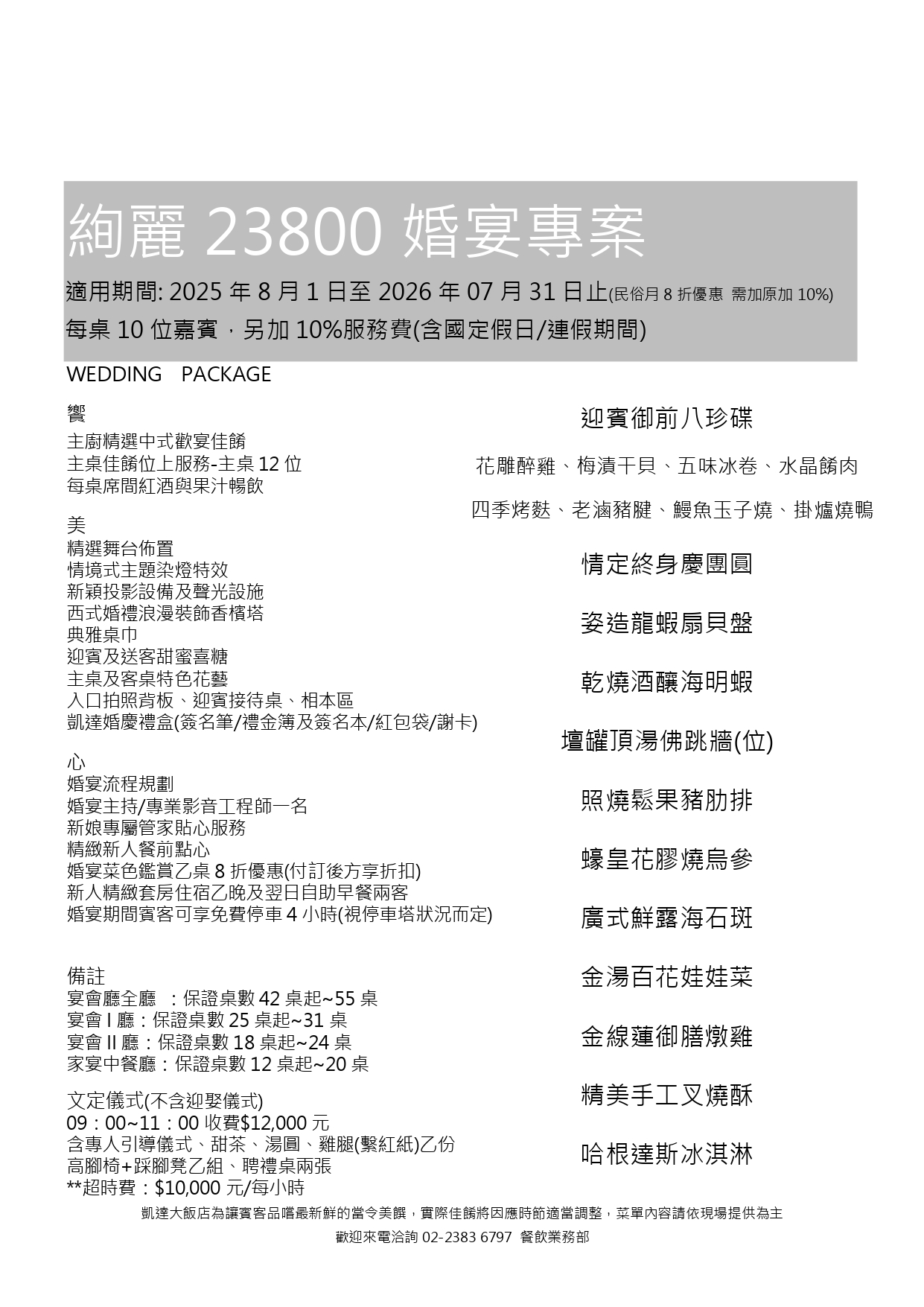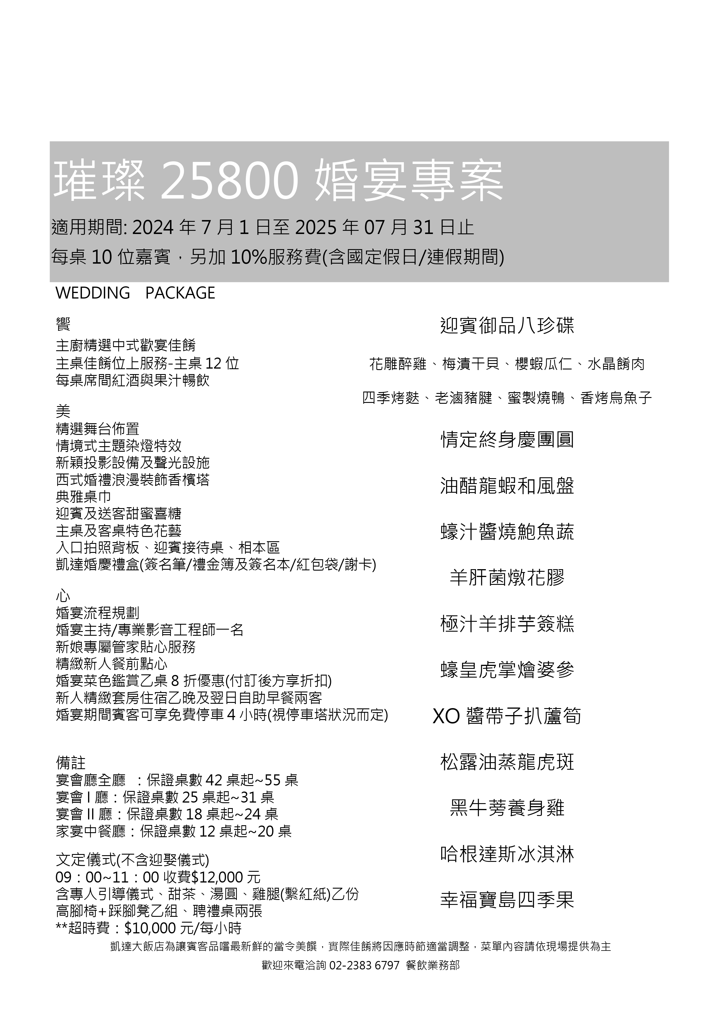 宴會 I 廳:保證桌數 25 桌起~31 桌